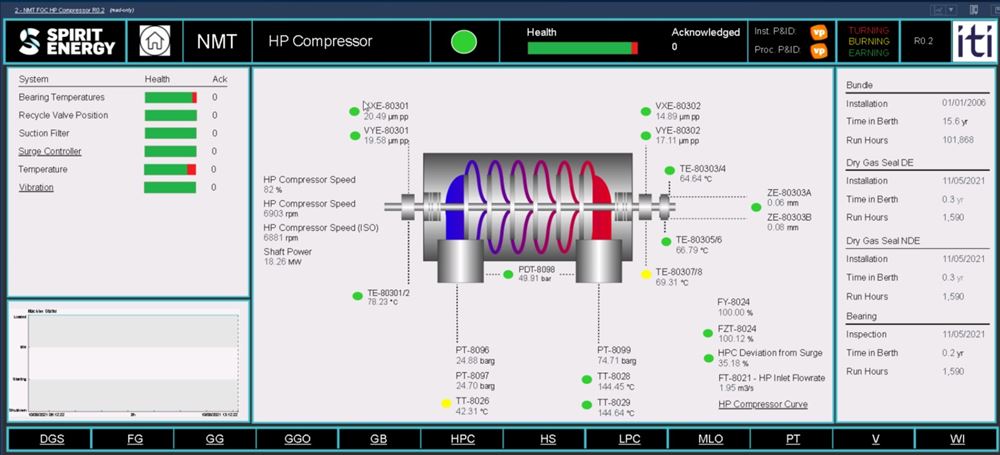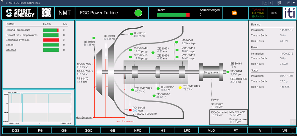 Following ITI’s successful installation of a new cyber secure communications interface for the gas turbine systems at North Morecambe Terminal, the provision of data on the rotating equipment was vastly increased. In order to make best use of this Condition-based Monitoring data, ITI expanded Spirit’s existing PI AF database and PI Vision screens, optimising data storage, frequency, integrity, accuracy and completeness; providing more efficient analytics; and upgrading the resultant displays of real-time data to improve user experience and response time of maintenance engineers.